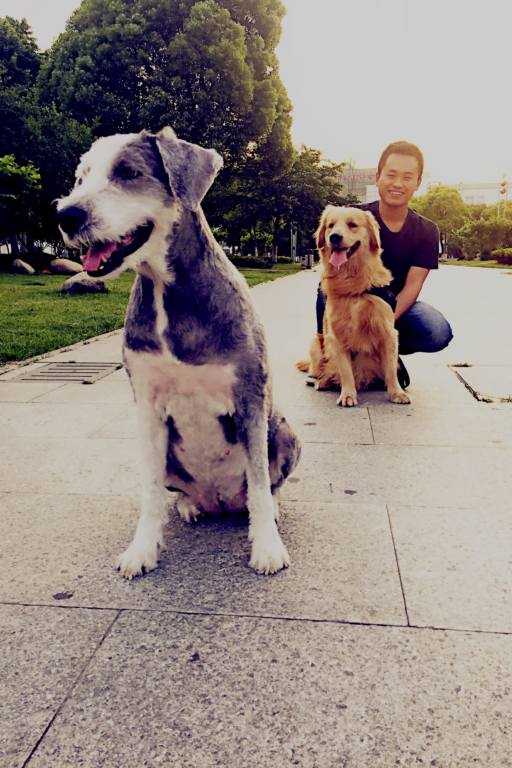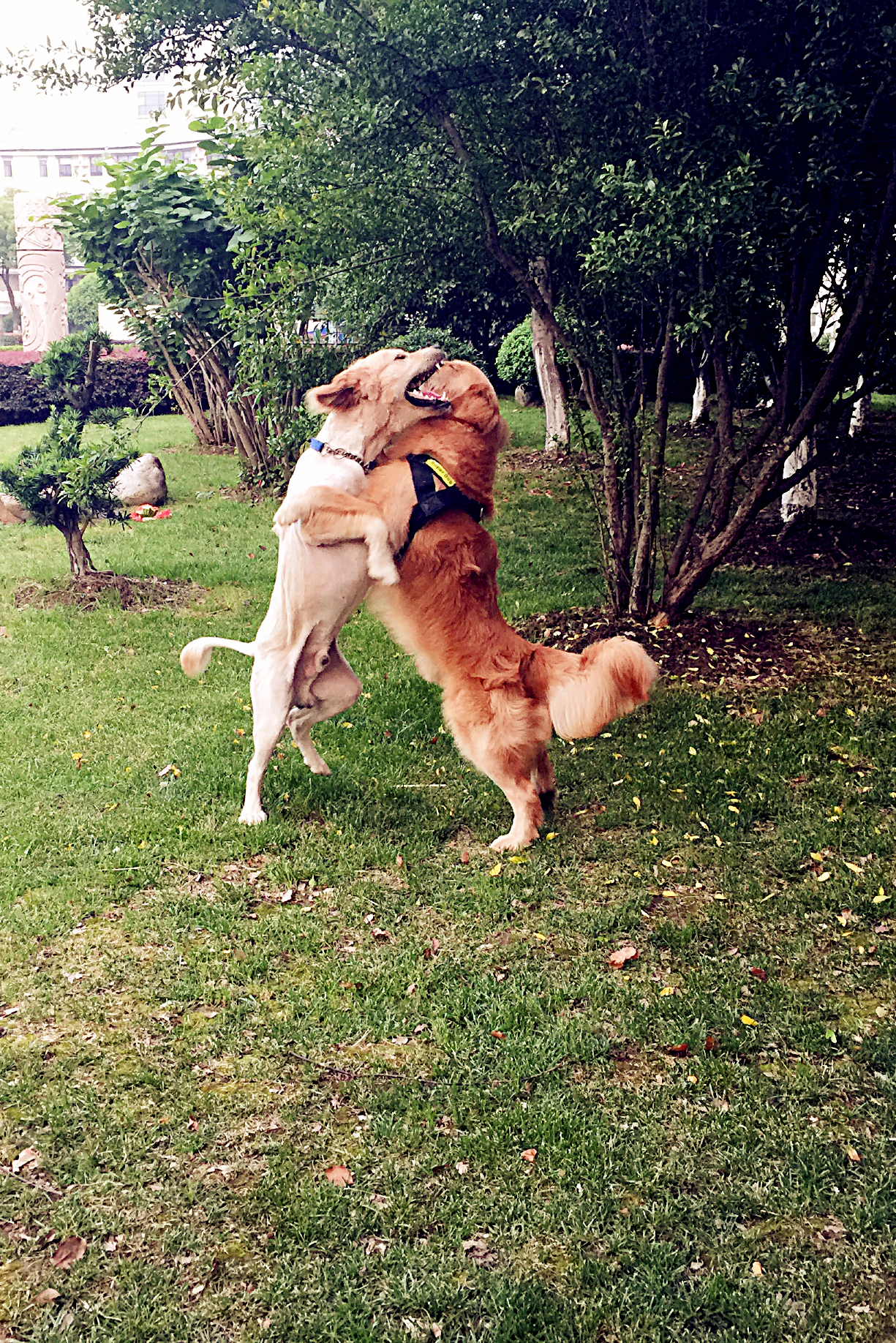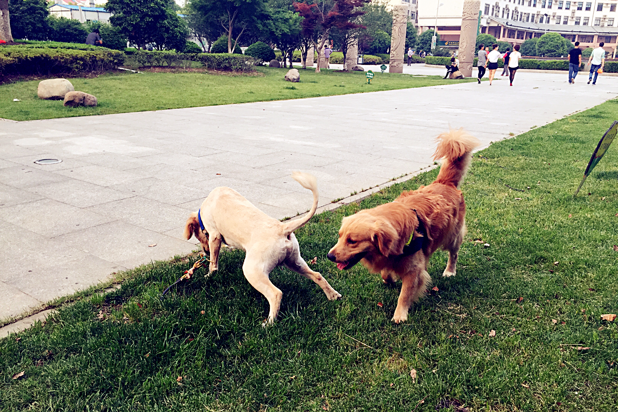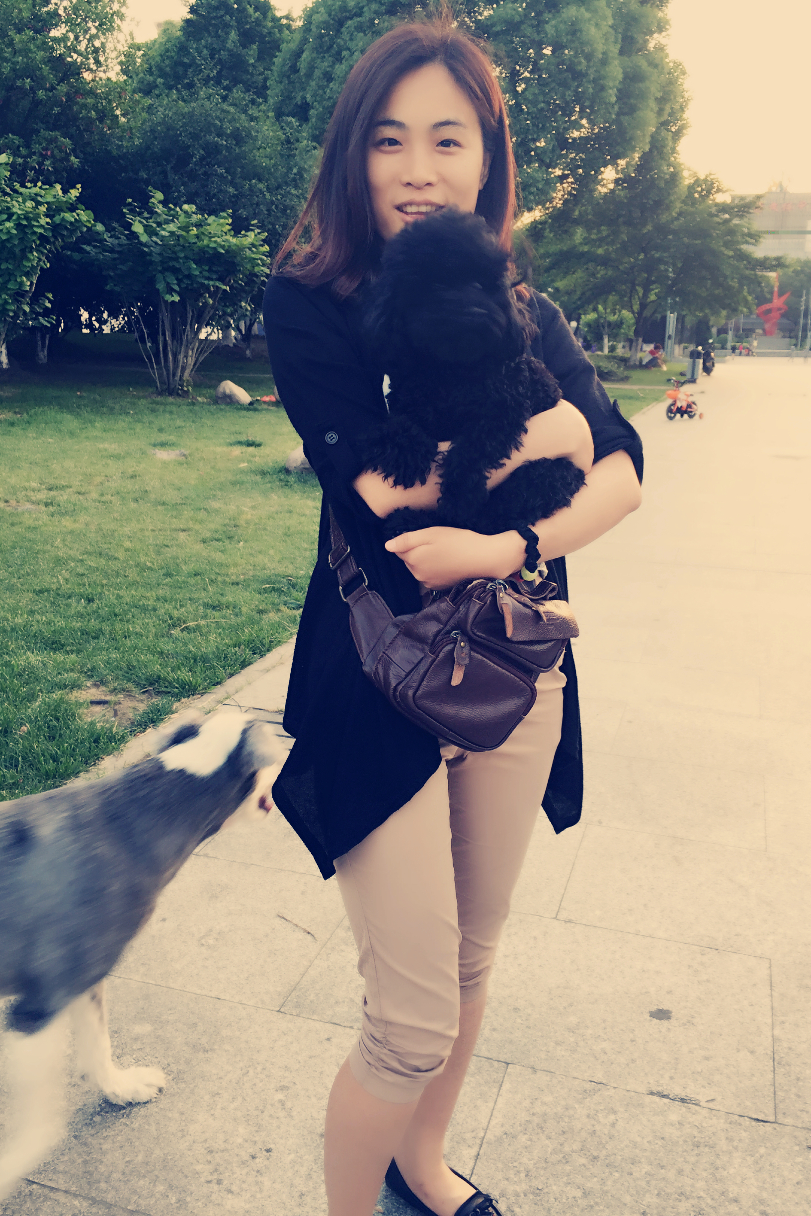 我是可可(右侧),今天第一次和球球见面