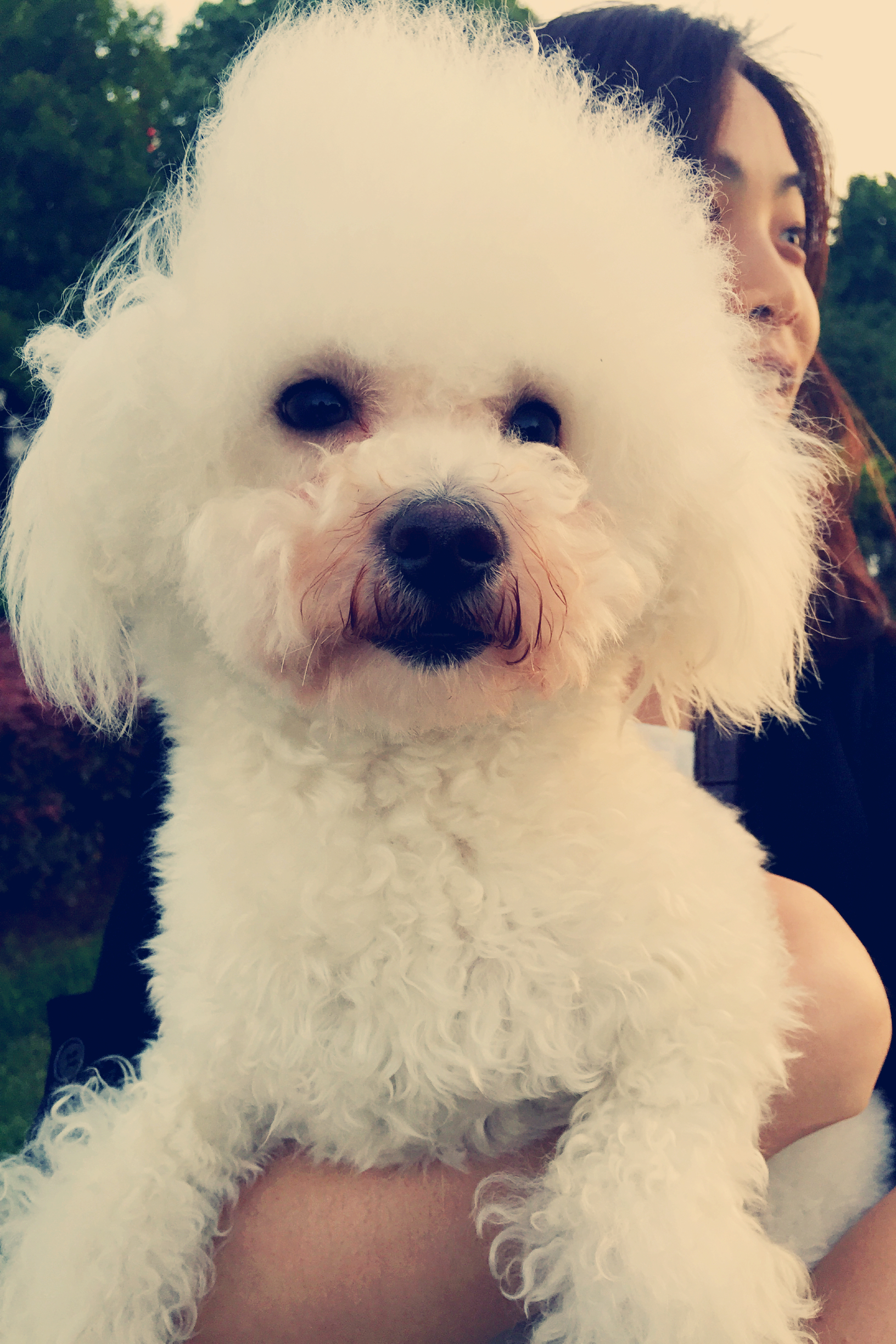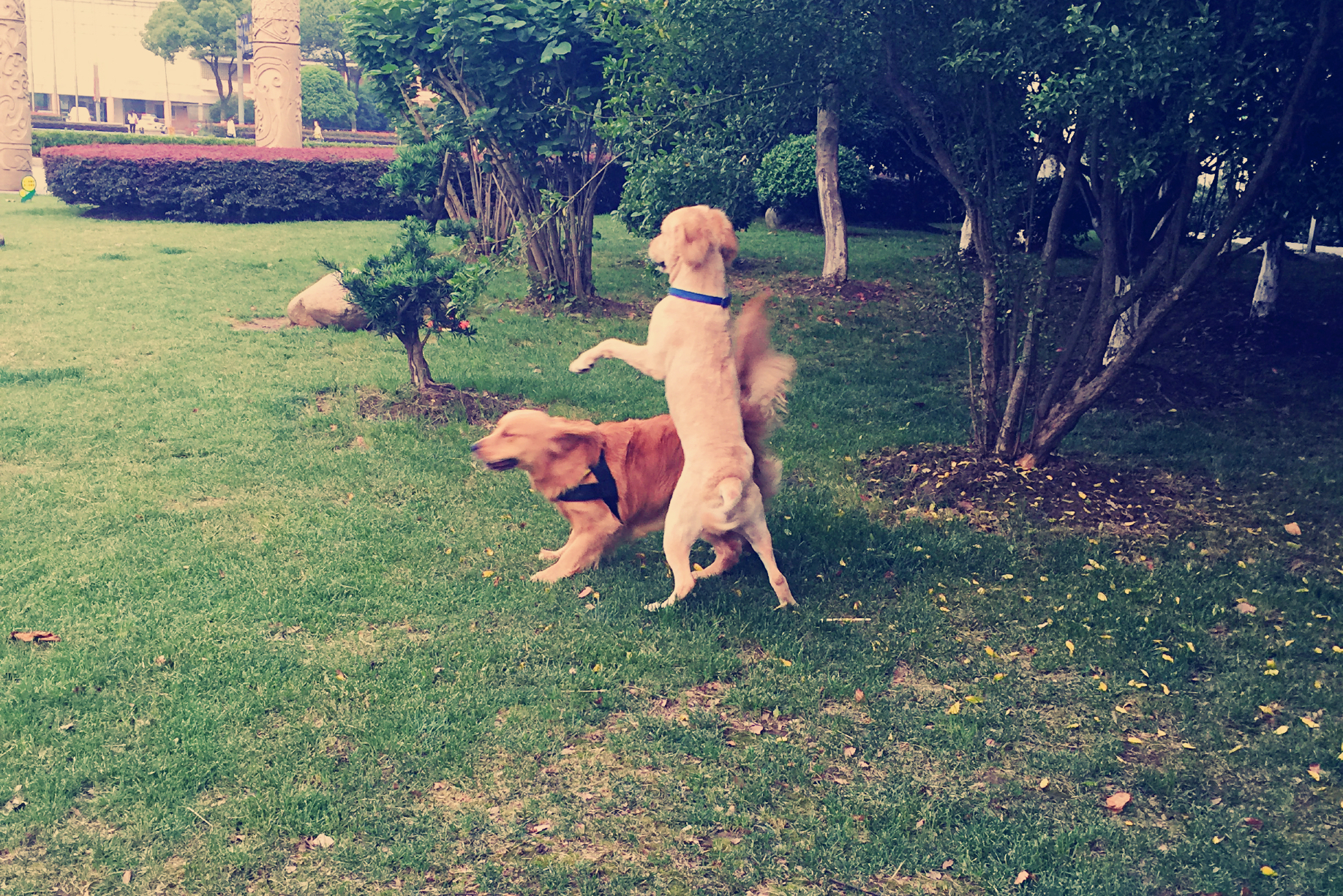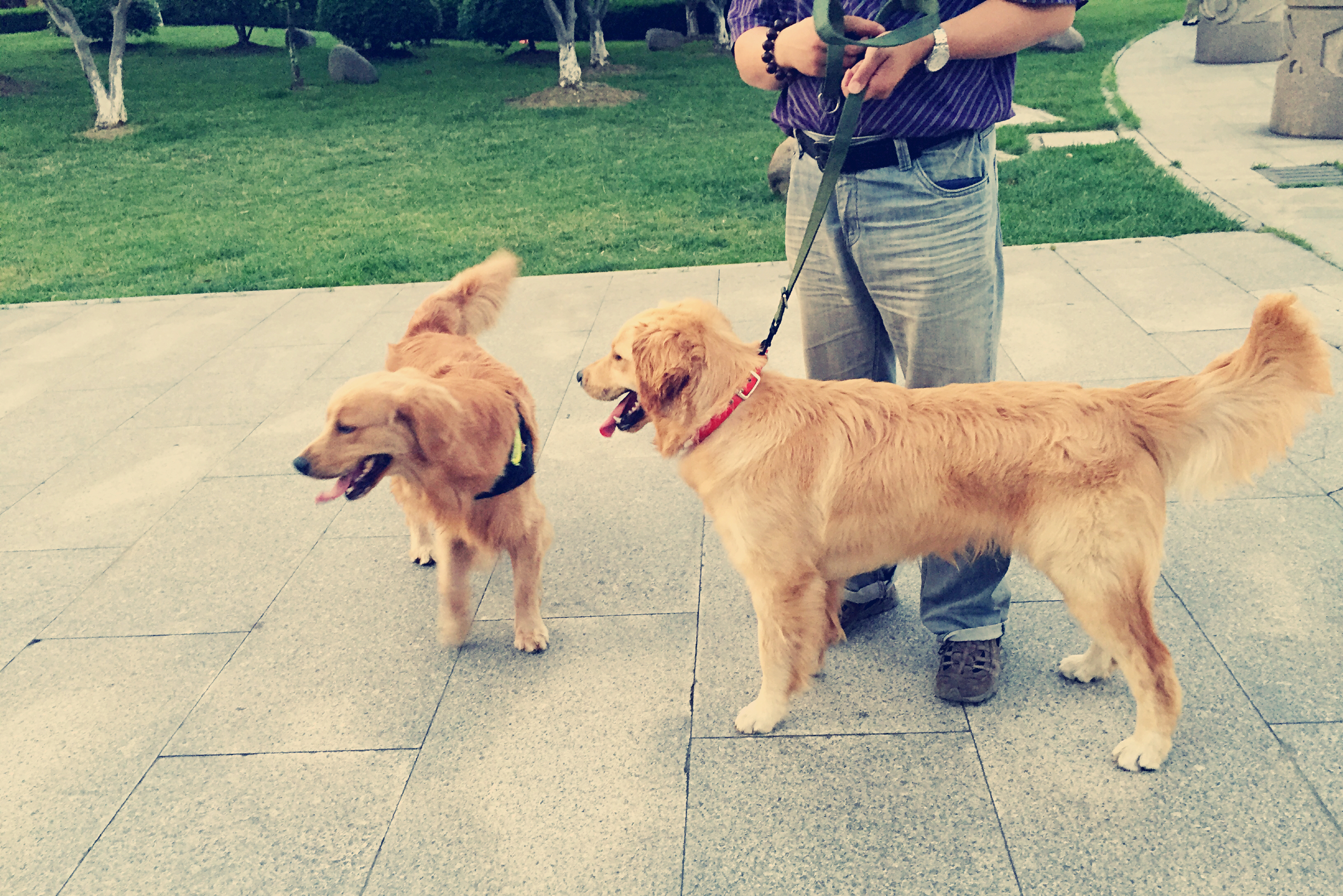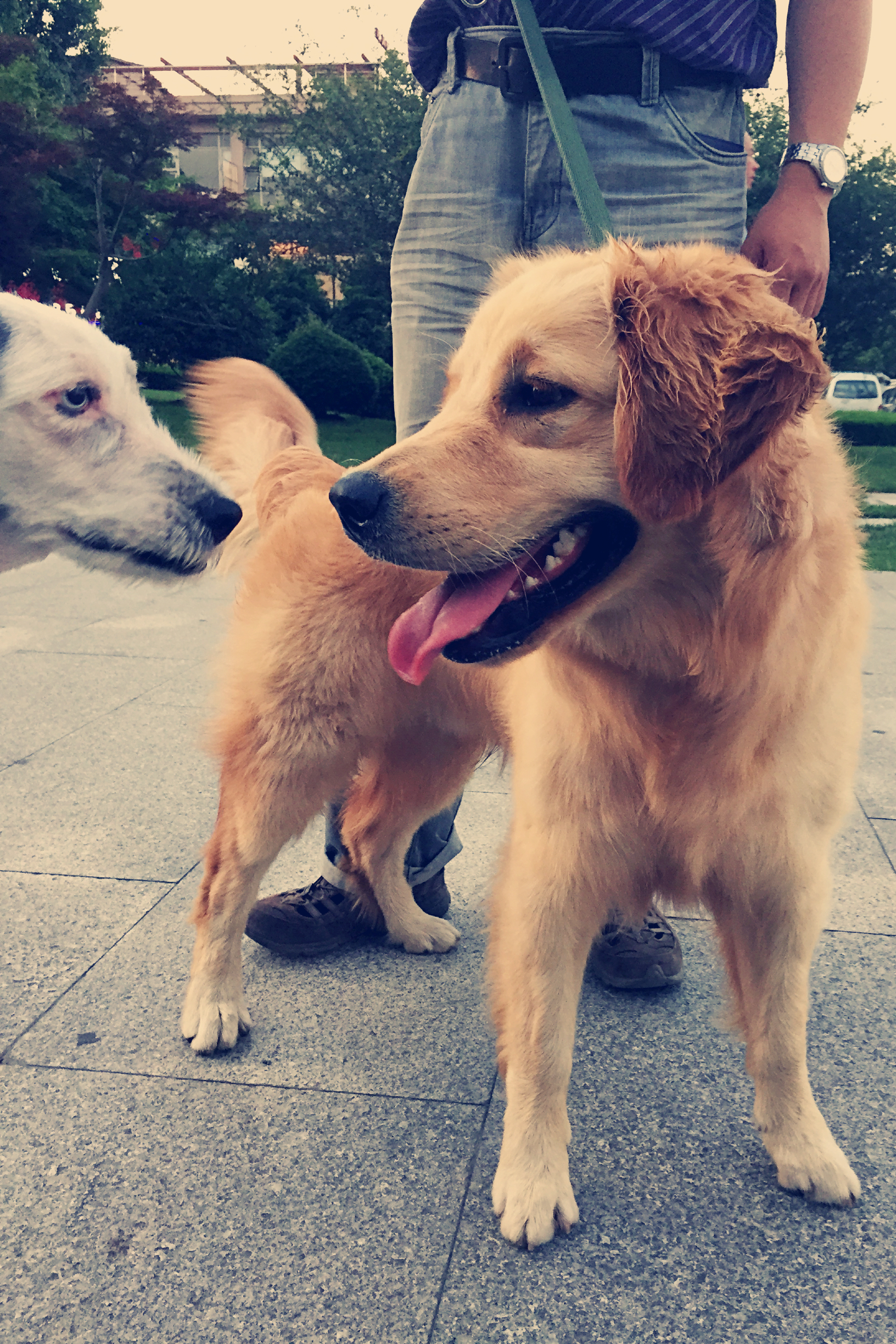 我是可可(右侧),今天第一次和球球见面
