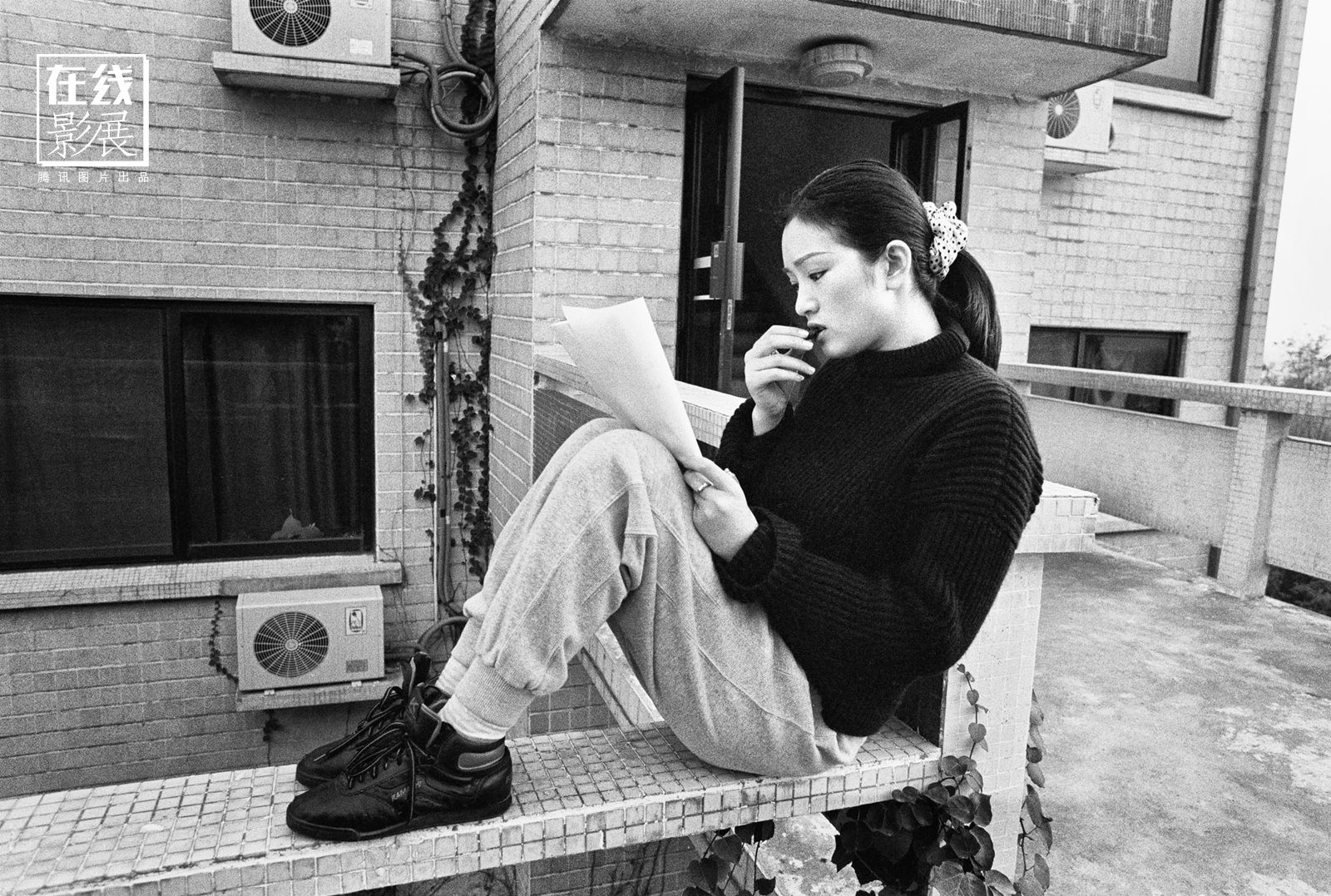 图 为表演艺术家巩俐,苏州,1994年11月。“巩俐和我拉起了家常:我们北京的家弄好了,我想把我妈接来,我觉得女人呀,在事业上不一定太要强,不就是一 个奥斯卡吗,真的,名和利对我来说没意思,我真想好好的过日子,再演两三部好戏,我就不想干了。 她扎着一根马尾辫,穿着剧组的衣服,白白的脸,透出一股孩子气。你想要小孩吗?我问她。当然想呀。她又说,导演最近越来越瘦,都不能正常的休息,真为他担 心。”