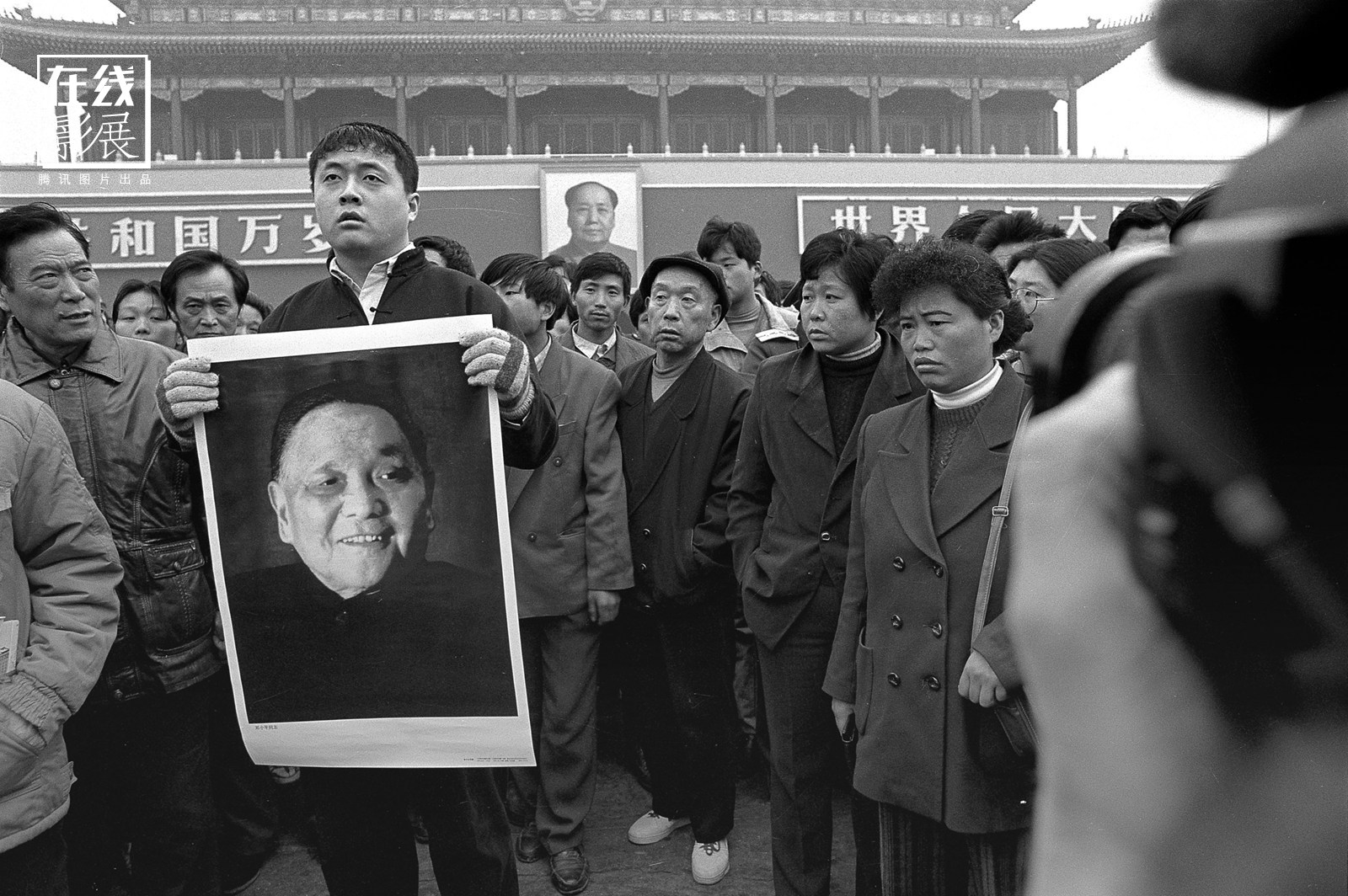 “ ‘我们这一代’什么意思?我用了一张照片解释我们这一代,有一个哥们在天安门那儿举着一张邓小平的照片,那个照片作为我的章节里边放在中国走向开放最后一 章:邓小平时代的结束。邓小平结束了那个时代,邓小平一走那个时代结束。”肖全拍下了城市改革中一张张普通的脸,如今这些,都构成了历史语境的一部分。这 些普通人,是历史,是真实,是与那些名人,一起生活在同一个时代的存在。照片是黑白的,时代却是喧嚣的。图为邓小平先生离世,北京,1997年2月。