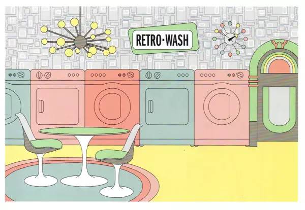 虽然公共洗衣房在国内并不多见,但是设计师这样对商业服务结合的创意是值得我们参考的。看似无厘头的强行结合,其实有内在逻辑的,首先找到了洗衣房环境差的现状,抓到了人们在洗衣房等待时感到无聊,觉得时间过得缓慢的心态,于是加入了我们既定印象中环境良好的咖啡厅,用健身,闲聊等方式来打发无聊的等待时间,其实都是合理的。所以我们在学习别人的设计案例时,要学习的是设计师背后思考问题的思维,解决问题的方式,而不只是看到别人用复古的视觉来设计洗衣房这样表层的东西。